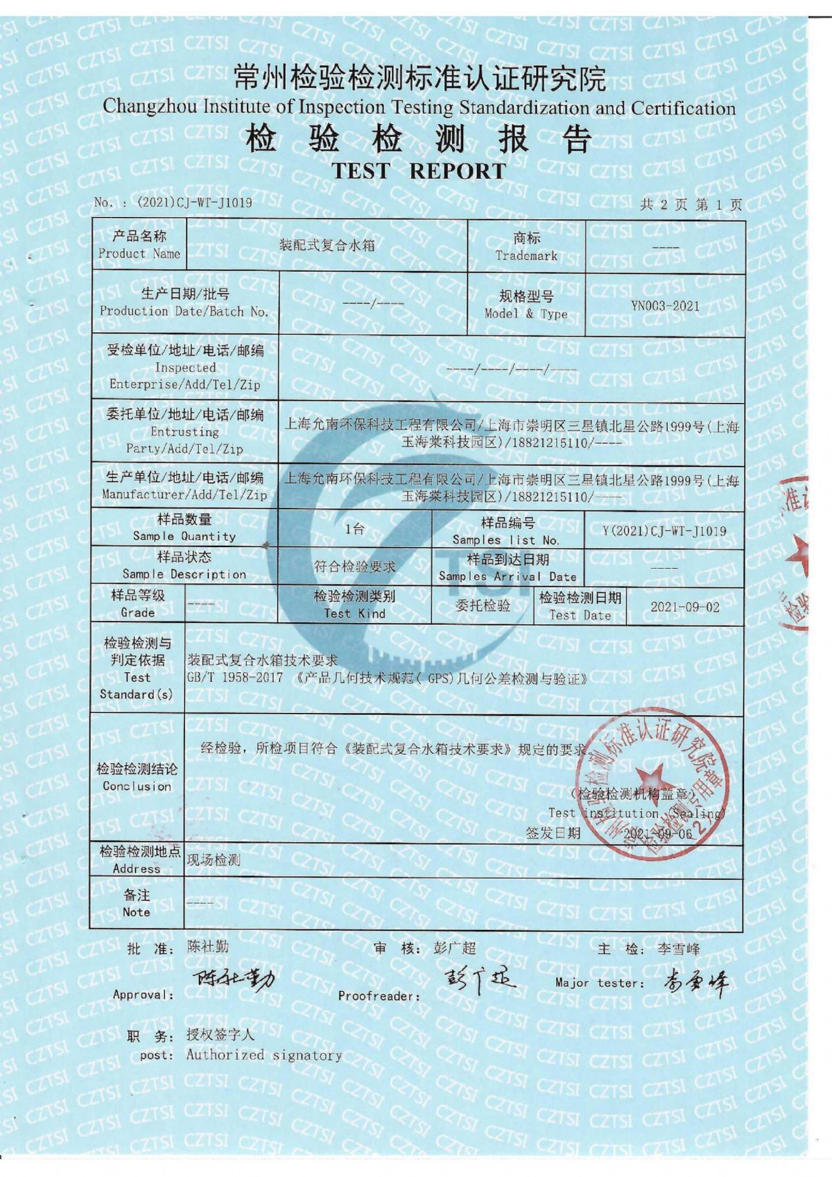 允南拼接式復合箱體檢測報告